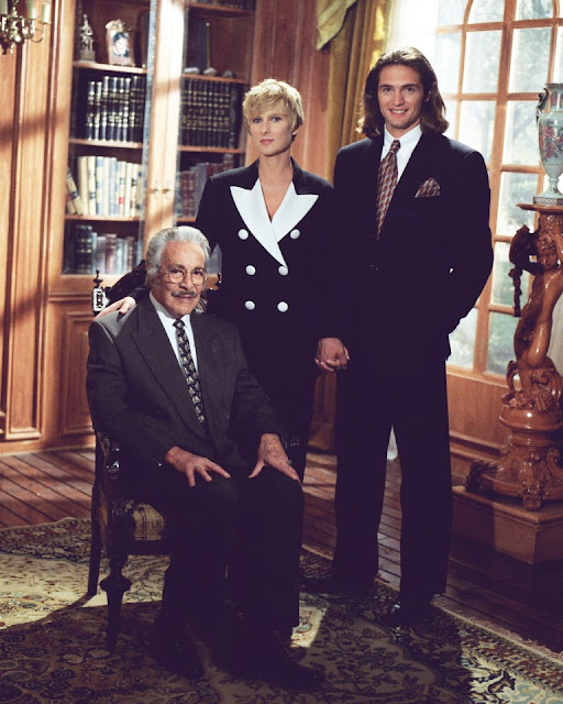 En la primera foto junto a Ernesto Alonso y Juan Soler, en la segunda con Saúl Lisazo y en la tercera con Alfredo Adame y Roberto Blandón. Fotos de la telenovela “Bajo un mismo rostro”.